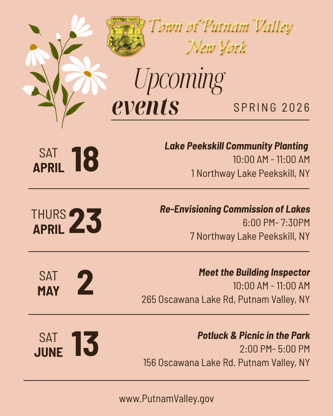 Putnam Valley Spring 2026 Events Lineup